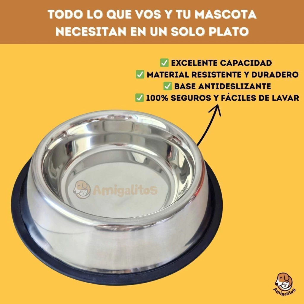 Gracias a su diseño de acero inoxidable de alta calidad y su base antideslizante, no solo es resistente, sino que también es seguro para el uso diario ya que tu peludito podrá disfrutar de sus comidas sin arrastrar el plato por toda la casa.
